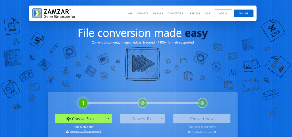 - Go to Zamzar’s website.